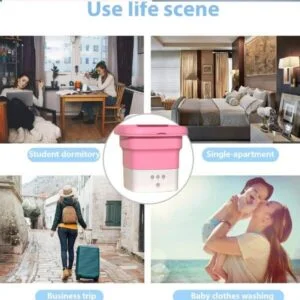 - قابلة للطي: تصميم فريد يسمح بطي الغسالة وتخزينها بسهولة حين لا تكون في استخدام.