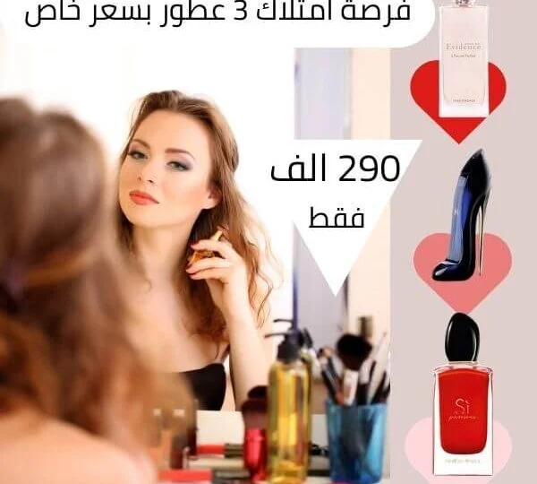 استعدوا لتجربة عالم العطور الرائعة مع هذا العرض الخاص الذي نقدمه لكم اليوم. نفخر بتقديم مجموعة من أرقى العطور التي ستأسر حواسكم وتضيف لمسة خاصة إلى أي مناسبة. احصلوا على ثلاثة من أشهر العطور في العالم بأسعار لا تُقاوم: